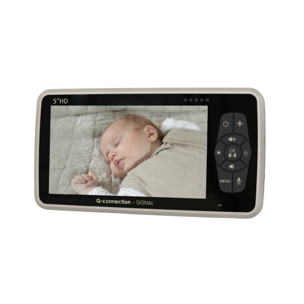 Deze zandkleurige babyfoon van het merk Qute, heeft een moderne camera en een groot helder HD kleuren-beeldscherm van 5 inch. De babyfoon is draadloos te gebruiken met opgeladen XL batterij (langer dan 14u), daarnaast kan deze ook aangesloten worden op het stroomnet met bijgeleverde adapter.